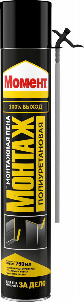 Монтажная пена Момент Монтаж Стандартная представляет собой готовую к применению однокомпонентную полиуретановую пену, затвердевающую под воздействием влажности воздуха.
