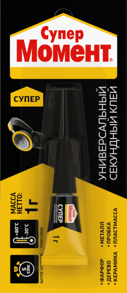 Супер Момент Универсальный отлично склеивает широкий спектр материалов. Это быстрый, надежный и стойкий секундный клей, на который всегда можно положиться!