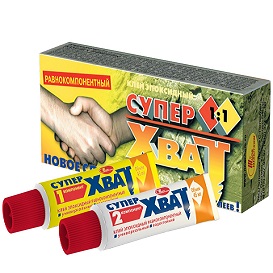 Клей предназначен для склеивания металлов и их сплавов, керамики, фарфора, стекла, древесины, пластика, декоративно-облицовочных плит в бытовых и промышленных целях. Клей "Супер-Хват" обеспечивает высокую прочность склеивания за счет отвердевания эпоксидной смолы при смешении обоих компонентов.