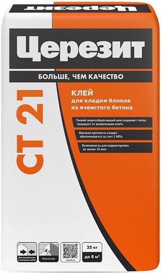 Описание Клей для Кладки Блоков Ceresit CT 21 25кг из Ячеистого Бетона / Церезит.