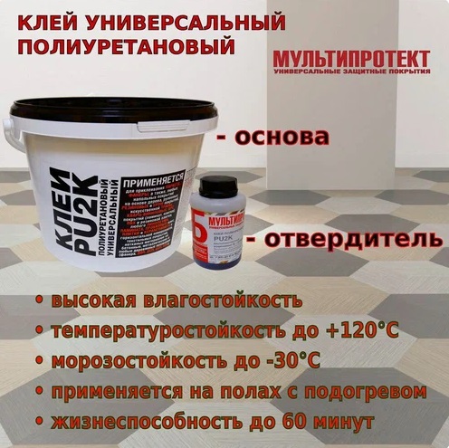 Описание Клей Паркетный 2-х комп. Полиуретановый Мультипротект PU2K 9кг Универсальный для Внутренних и Наружных Работ.Описание: