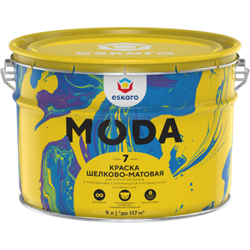 Описание Краска для Стен и Потолков Eskaro Moda 7 2.7л Шелково-Матовая, Белая, Долговечная, Моющаяся.