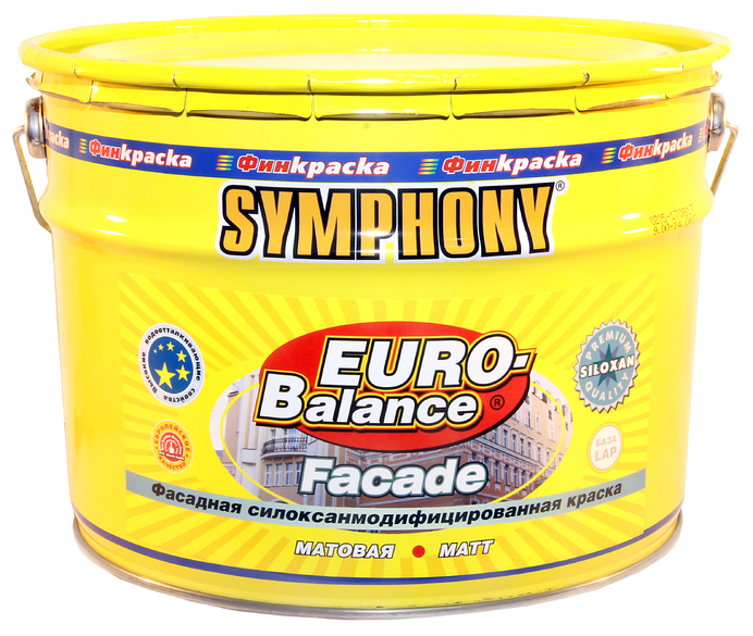 Описание Краска Фасадная Финкраска Symphony Euro-Balance Facade Siloxan 10л Белая, Матовая, Силокcанмодифицированная, Водоразбавляемая / Симфония Евро Баланс Фасад Силоксан.