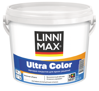 Краска Интерьерная Linnimax Ultra Color 2,35л Белая, Матовая База 3 / Линнимакс Ультра Колор.