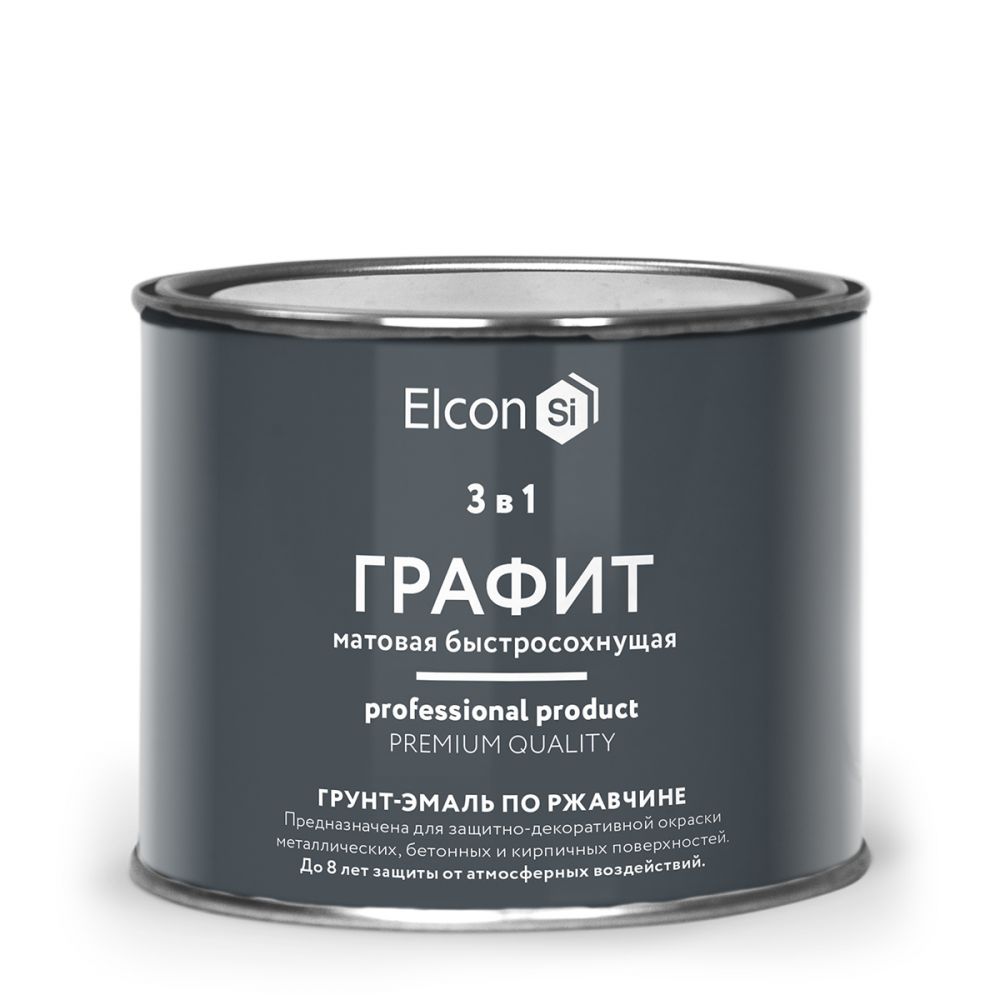 Описание Грунт-Эмаль по Ржавчине Elcon 3 в 1 0.4кг Быстросохнущая, Атмосферостойкая, Графит / Элкон 3 в 1.