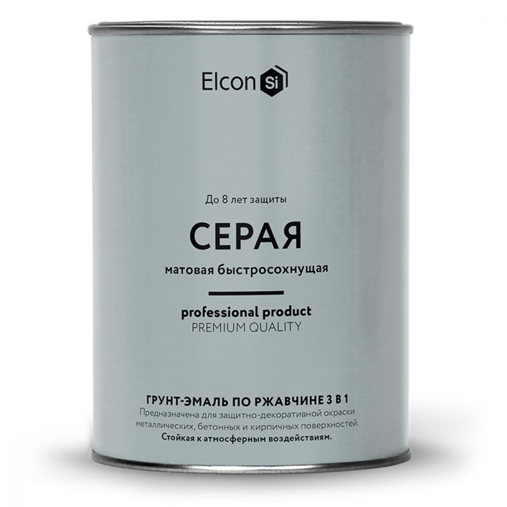 Описание Грунт-Эмаль по Ржавчине Elcon 3 в 1 0.8кг Быстросохнущая, Атмосферостойкая, Серая / Элкон 3 в 1.