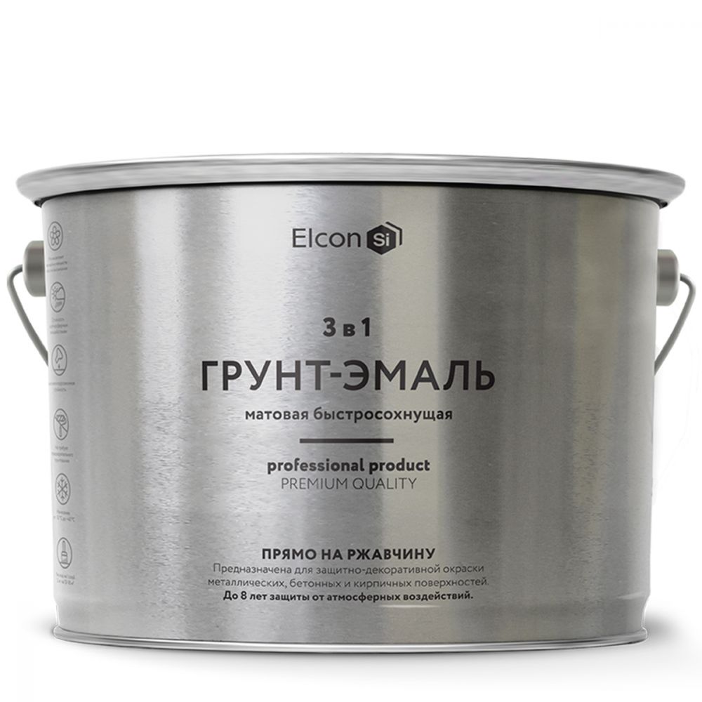 Описание Грунт-Эмаль по Ржавчине Elcon 3 в 1 10кг Быстросохнущая, Атмосферостойкая, Черная / Элкон 3 в 1.