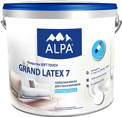 Описание Краска для Стен и Потолков Alpa Grand Latex 7 0.9л Белая, Супермоющаяся, Полуматовая / Альпа Гранд Латекс 7.