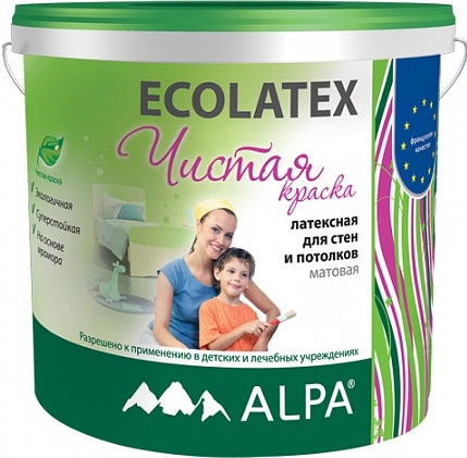 Описание Краска для Стен и Потолков Ecolatex 5л Белая Alpa Латексная Чистая.