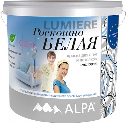Описание Краска для Стен и Потолков Alpa Lumiere 9л Роскошная Белая / Альпа Лумиере.