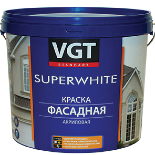 Описание Краска Фасадная VGT Superwhite ВД-АК-1180 15кг Cупербелая, Акриловая / ВГТ Супервайт.