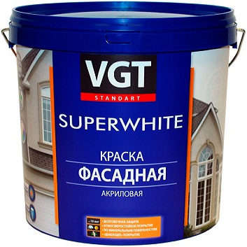 Описание Краска Фасадная VGT Superwhite 6кг Cупербелая, Акриловая / ВГТ Супервайт.