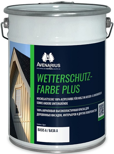 Описание Краска по Дереву Avenarius Wetterschutz-Farbe Plus 5л Белая, Матовая, Акриловая, Высокоэластичная / Авенариус
