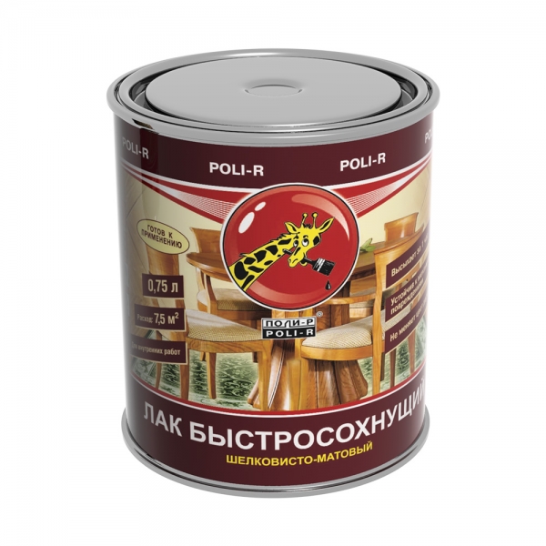 Описание Лак Быстросохнущий Poli-R 0.75л Глянцевый для Стен, Мебели, Дверей, Окон.ПРЕИМУЩЕСТВА