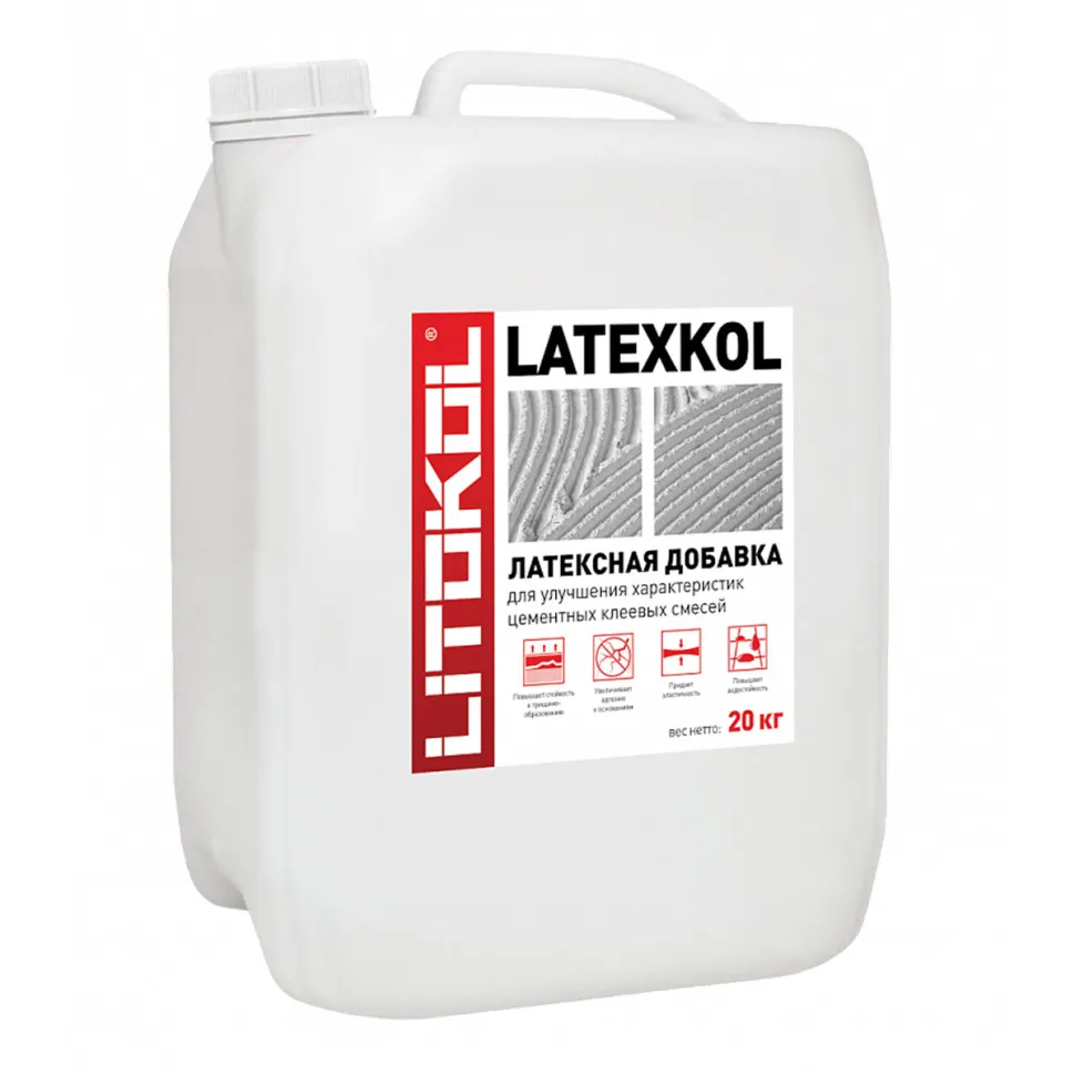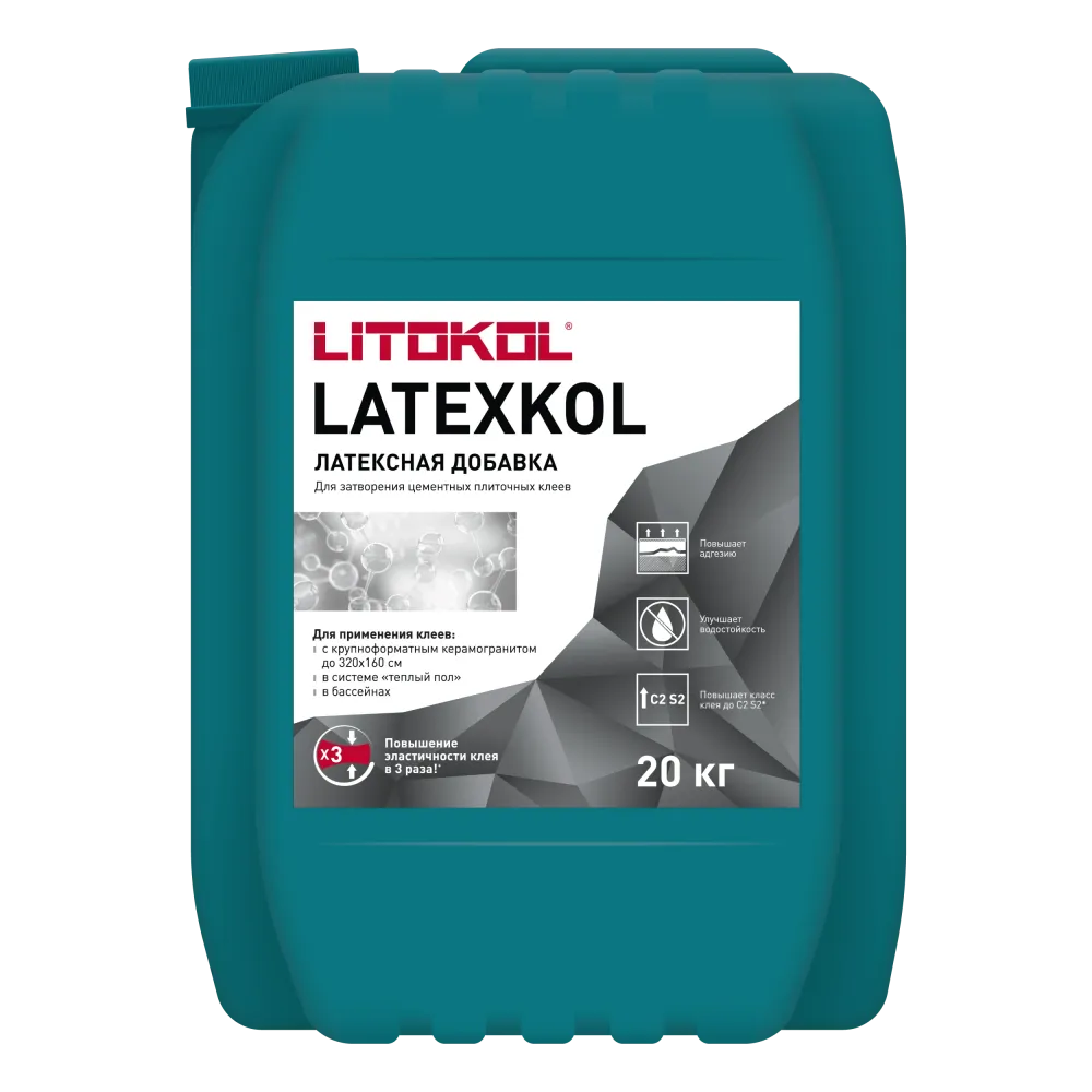 Латексная добавка LATEXKOL-м, предназначена для придания эластичности цементным клеевым смесям, повышения их стойкости к трещинообразованию при деформациях и повышения адгезии к основаниям. LATEXKOL-м рекомендуется для использования в качестве добавки к следующим клеевым смеcям LITOKOL: LITOKOL K17, LITOKOL X11, LITOPLUS K55, LITOSTONE K98/K99. При использование латексной добавки LATEXKOL-м, с цементными клеевыми смесями: