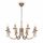 Металлическая арматура в двух оттенках: латунь и никель. Классическая форма плафона в виде свечи. Торшер и настольная лампа имеют тканевые абажуры. Белые – для арматуры цвета никель, оттенка кремовый шампань – для латунной. Декор – прозрачные хрустальные подвесы каплевидной формы. Торшер с цоколем Е27, лампа, бра и люстры – Е14.