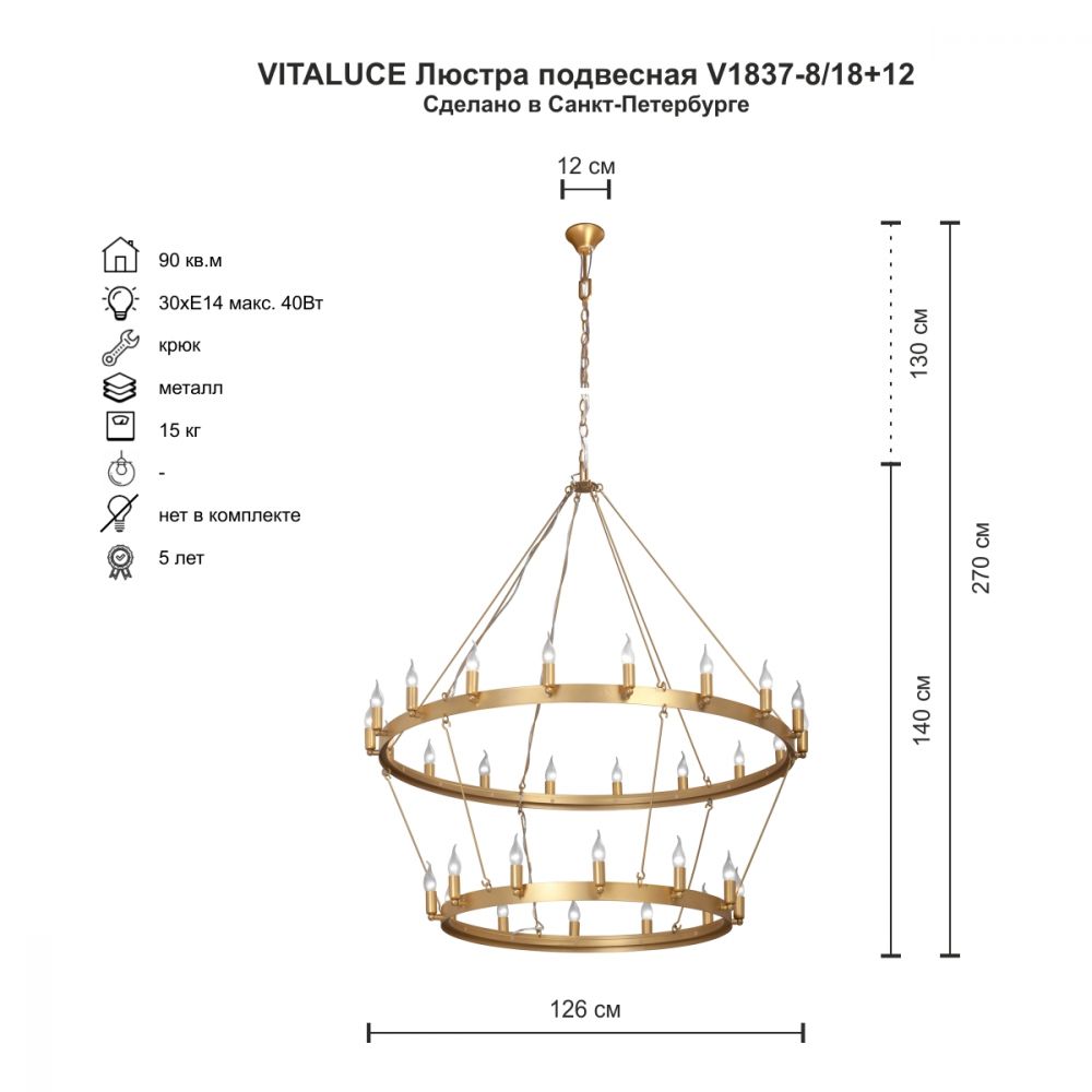 Описание Люстра Vitaluce V1837-8/18+12, 30xE14 Макс. 40Вт Золото / ВиталючеАртикул