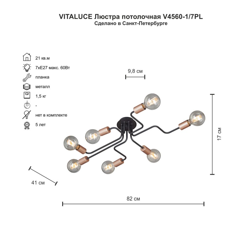 Описание Люстра Vitaluce V4560-1/7PL, 7хE27 Макс. 60Вт Черный, Матовый / Виталюче.Артикул