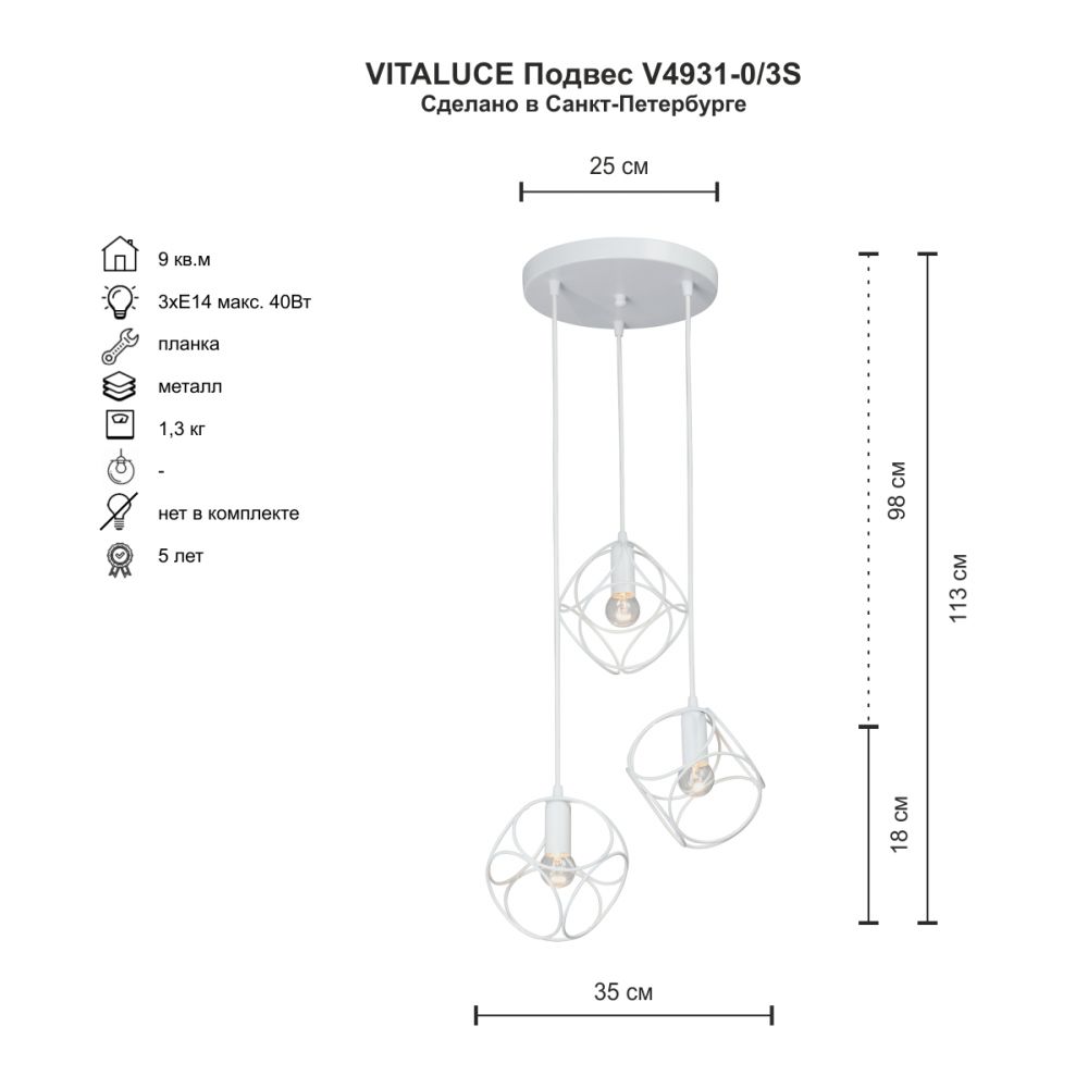 Описание Люстра Vitaluce V4931-0/3S, 3xE14 Макс. 40Вт Белый, Матовый / Виталюче.