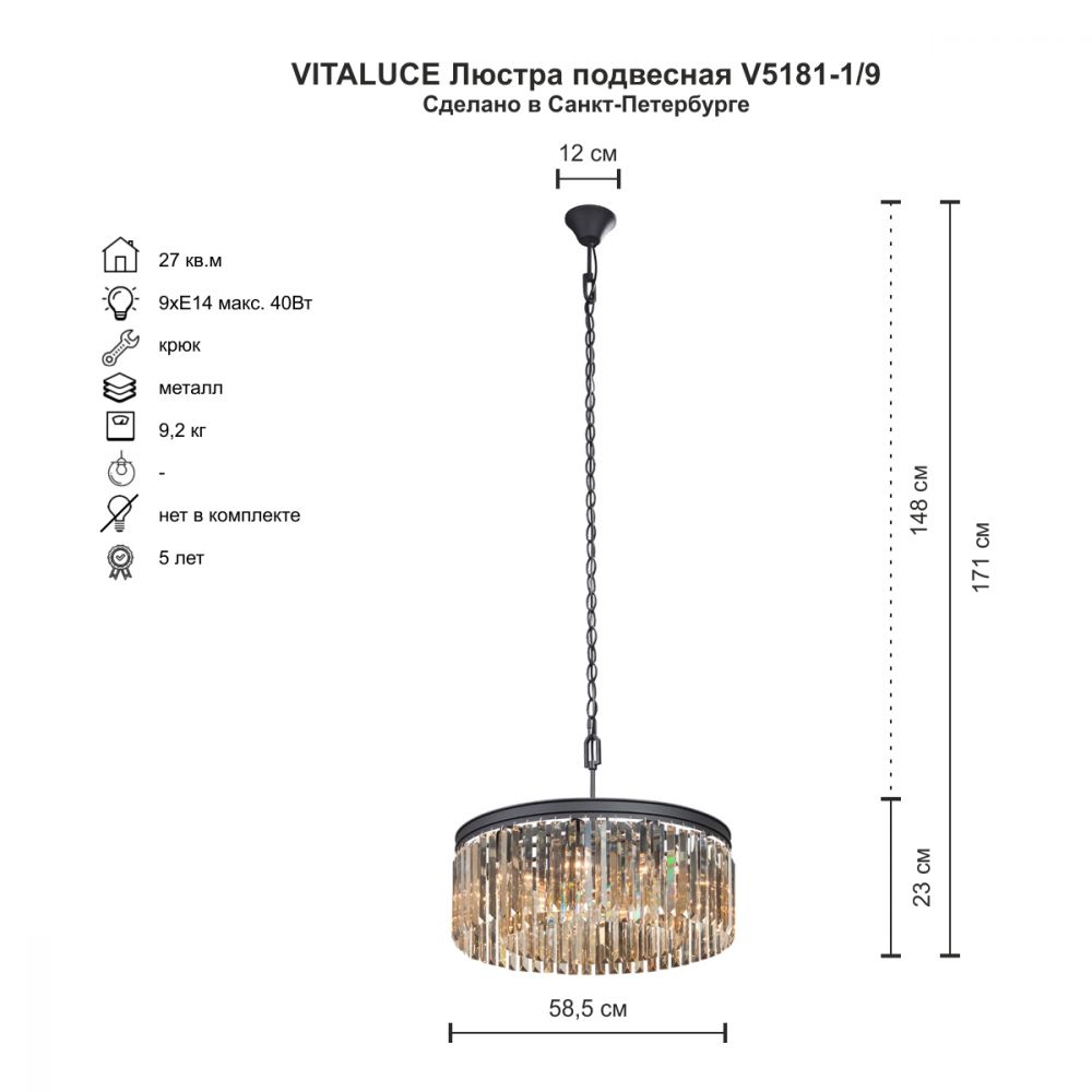 Описание Люстра Vitaluce V5181-1/9, 9xE14 Макс. 40Вт Черный, Матовый / Виталюче.Артикул
