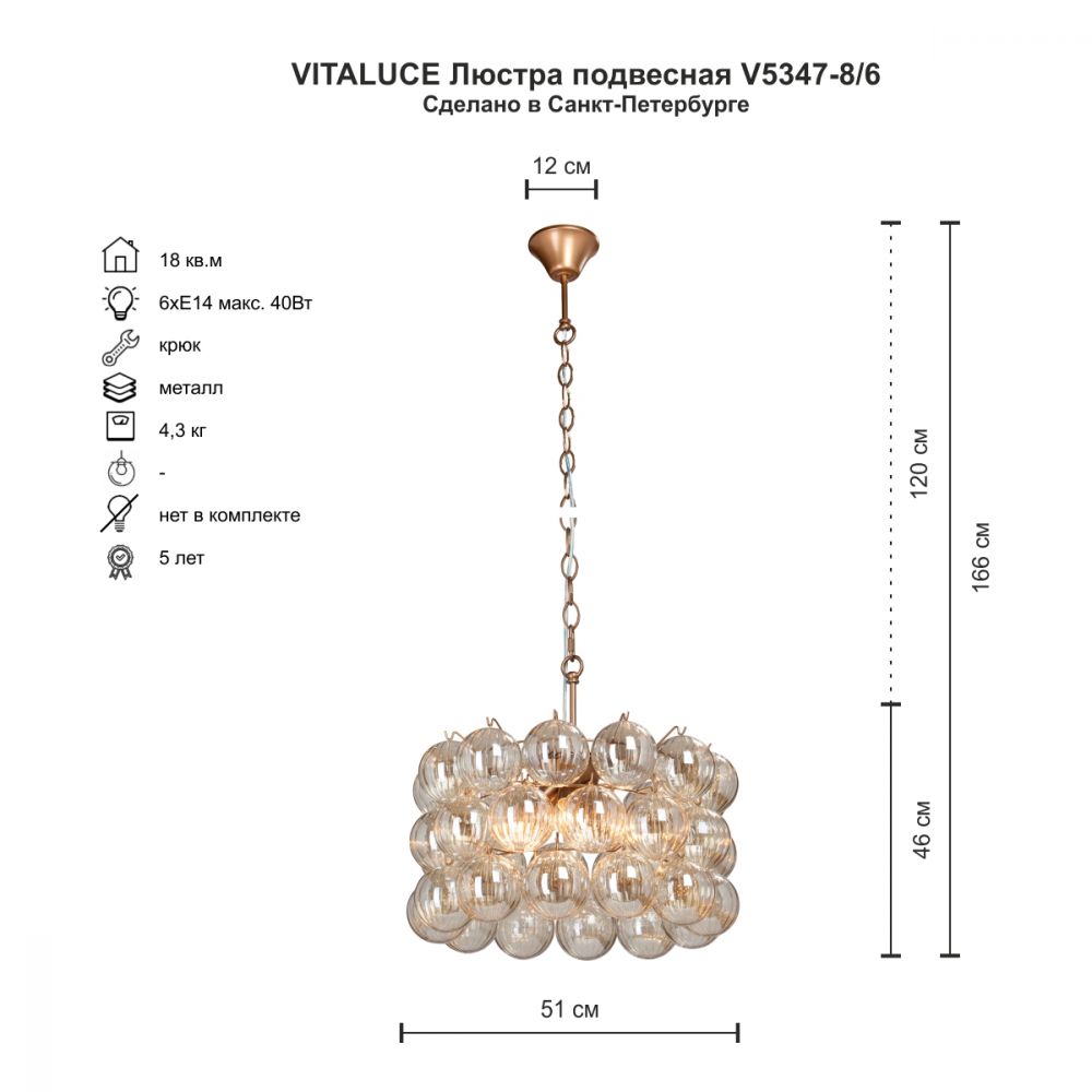 Описание Люстра Vitaluce V5347-8/6, 6xE14 Макс. 40Вт Светлая Медь / Виталюче.