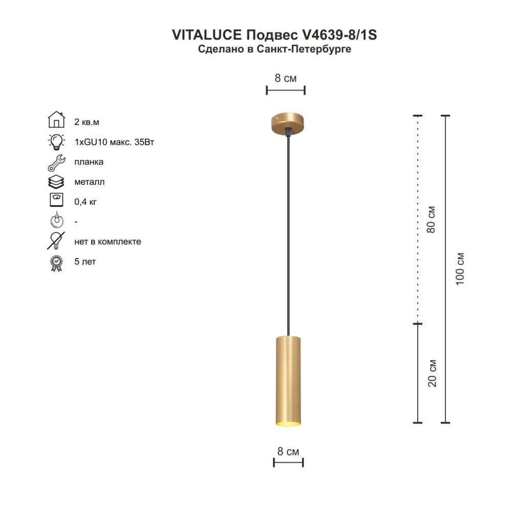 Описание Подвес Vitaluce V4639-8/1S, 1хGU10 Макс. 35Вт 20 Золото / Виталюче.