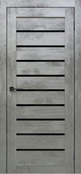Описание Межкомнатная Дверь Verda X-2 Бетон Светлый со Стеклом Лакобель Чёрный 2000х800мм (Полотно+Коробка+5 Наличников) / Верда.