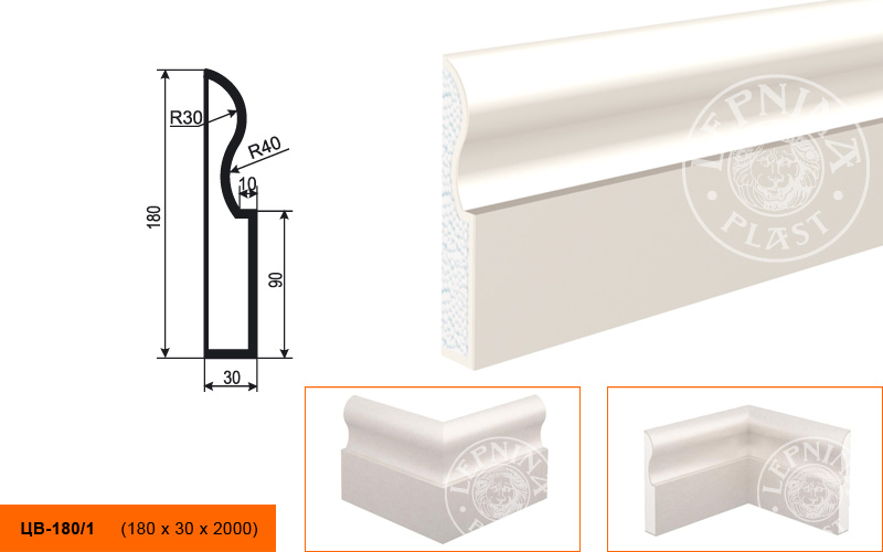 Описание Молдинг Цокольный Lepninaplast ЦВ-180/1 В180хШ30хД2000 мм / Лепнинапласт.
