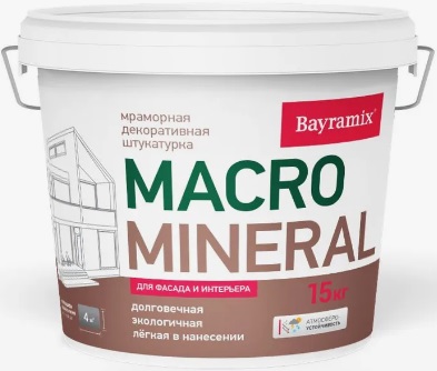 Продукция: Штукатурка Тип продукции: Штукатурки с мраморной крошкой Вид штукатурки: Мраморная Класс товара: Стандартный Производитель: Bayramix Коллекция: Макроминерал Страна производства: Россия-Турция Область применения: Внутри помещения, Снаружи помещения Декоративные эффекты: Яркие насыщенные цвета Размер крошки: 1,5 – 2,0 мм Расход на 1 м2: 4,0 – 4,5 кг Способы нанесения: Ручной Тип продукции: Мраморная штукатурка В качестве декоративной отделки фасадов и особенно цоколей, а также различных вертикальных поверхностей внутри помещения можно использовать мраморную штукатурку Макроминерал. Этот материал образует крупнозернистое мозаичное покрытие с выраженной фактурой, так как в своем составе имеет натуральную мраморную крошку нескольких цветов диаметром более 1,5 мм. Готовая к нанесению смесь также состоит из акриловых и других связующих элементов. Процесс нанесения: Мраморная штукатурка Макроминерал используется только на ровной сухой поверхности. Допускает наненсение на практически любой материал: Дерево ДСП Фанера Бетон Кирпич Гипсокартон ЦСП другие материалы Поверхность сначала следует обработать от проявляющих пятен, трещин и других неровностей. После этого необходимо нанесение грунтовки Астар кварцевый и ожидание ее полного высыхания (не менее суток). Далее, разводится штукатурка водой, но не более 1 л. на 20 кг смеси. Наносится она на поверхность с помощью кельмы равномерно от одного угла к другому беспрерывно. Слой материала должен равняться 1,5 зерна. До момента высыхания нужно дополнительное разглаживание кельмой, она должна быть чистой без царапин и сделана из нержавеющей стали. Готовая поверхность обретает яркую текстуру. Для получения ровных стыков, декоративных рисунков и углов используют клейкую ленту. Дополнительная обработка лаком BS-35 производства Bayramix придаст поверхности более выраженную фактуру и обеспечит дополнительную защиту и долговечность. При наружных работах следует учитывать сухую безветренную погоду без сильного солнечного влияния, температура не должна быть ниже +5. Преимущества штукатурки Макроминерал: Поверхности, отделанные этим материалом, приобретают устойчивость к морозу, влаге и загрязнениям. Допускают мытье с добавлением в воду очищающих средств, можно мыть мойкой высокого давления. Обладают прочностью к механическим повреждениям, не разрушаются под воздействием прямых солнечных лучей и других природных явлений. Макроминерал не подвержен самовозгоранию и обеспечивает максимальную пожаробезопасность. Имеет хорошую воздухопроницаемость, не выделяет токсичных запахов. Цвет: 18 цветовых решений по каталогу Порядок нанесения: Основа должна быть ровной, прочной, чистой, и сухой. Имеющиеся на поверхности остатки старых покрытий тщательно удалить и прогрунтовать проникающим грунтом Байрамикс АстарФикс. При нанесении мраморной штукатурки на стекломагниевый лист, рекомендуется использовать специальный "Грунт по стекломагнезиту". Зашпаклевать дефектные участки. Завершить подготовку основы грунтом Астар Кварцевый (подколеровать в основной цвет мраморной штукатурки) ТМ Байрамикс. Мраморную штукатурку Bayramix Macro наносим после полного высыхания грунта. Перед применением мраморную штукатурку доводим до нужной консистенции водой: примерно 0,8-1,0 литра воды на 20 кг материала. При на