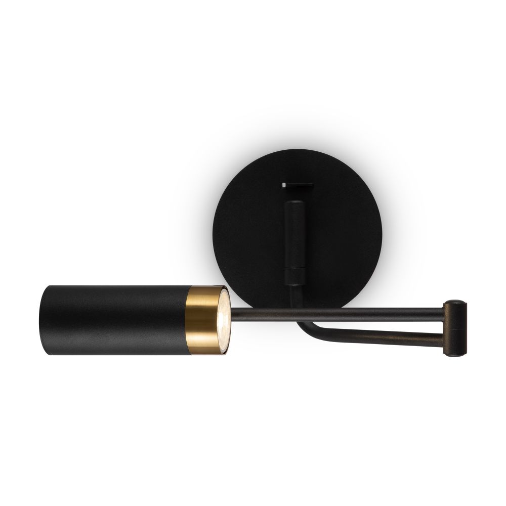 Арматура и плафоны из металла. Черный цвет дополнен латунной окантовкой. Поворотные плафоны и арматура позволяют видоизменять композицию и регулировать направление светового потока. Источник света – лампа GU10.