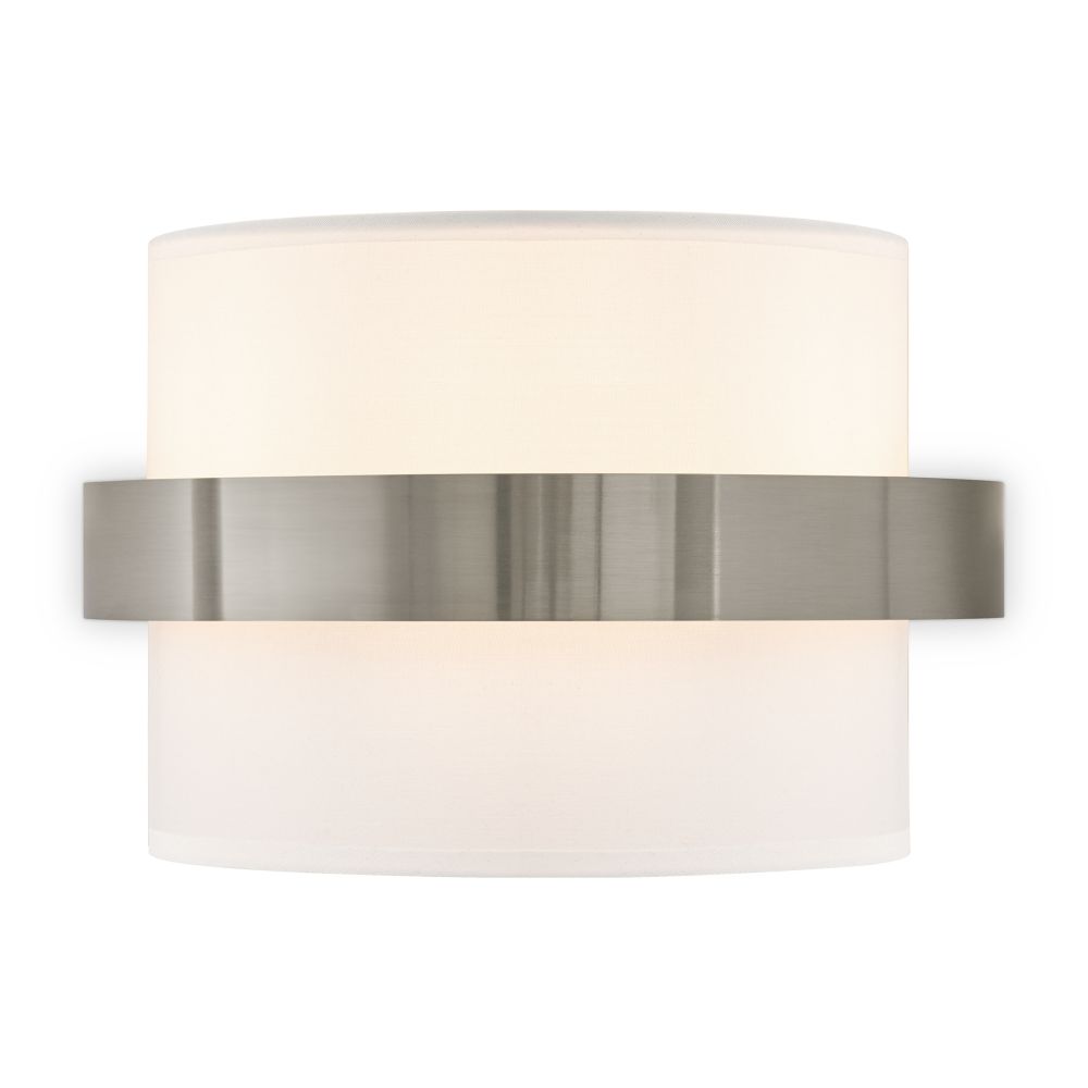 Цилиндрической формы абажур из ткани белого цвета. Декоративная парящая окантовка из металла в цвет арматуры. Регулируется по длине. Компактные размеры подходят для низких потолков и небольших интерьеров. Металлическая арматура, цвет - латунь и никель. Источник света — лампа с цоколем Е14, E27 и для настенного бра дополнительный LED с температурой свечения 3000 K.