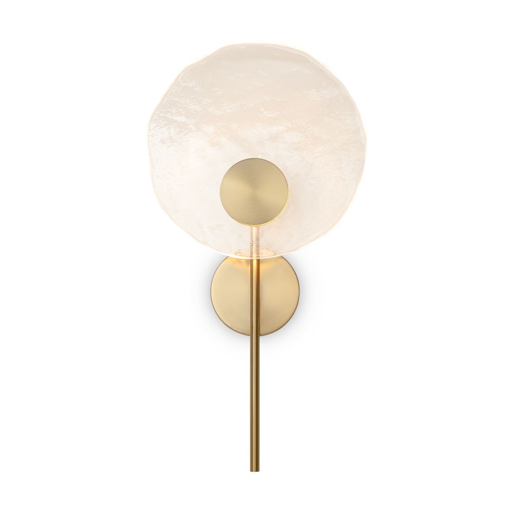 Материал арматуры — металл, цвет — латунь. Настенные светильники оснащены LED-источником света с цветовой температурой 2700К. Уникальное стекло ручного производства обеспечивает равномерное свечение всей поверхности плафона. Для достижения наилучшего светового эффекта рекомендуется использовать в сочетании с основными источниками света.