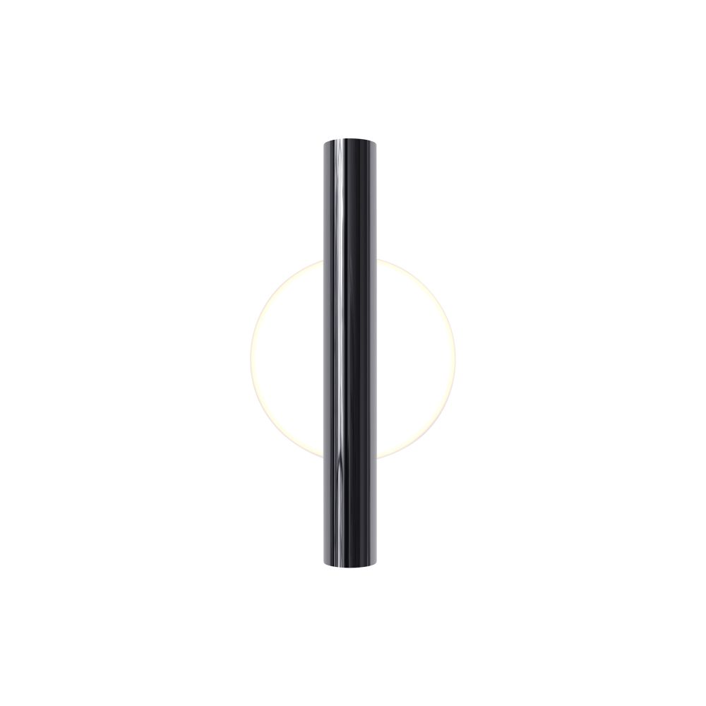 Металлическая арматура, цвета: черный, хром, золото. Источник света: LED-светодиод. Световая температура 3000К. Свет переотраженный, угол рассеивания 100 градусов. Дизайнерское решение с использованием линзы, создающей акцентный круг на стене и эффекта переотражения. Поверхность арматуры глянцевая, полузеркальная. Бра подойдет для зонирования помещений.