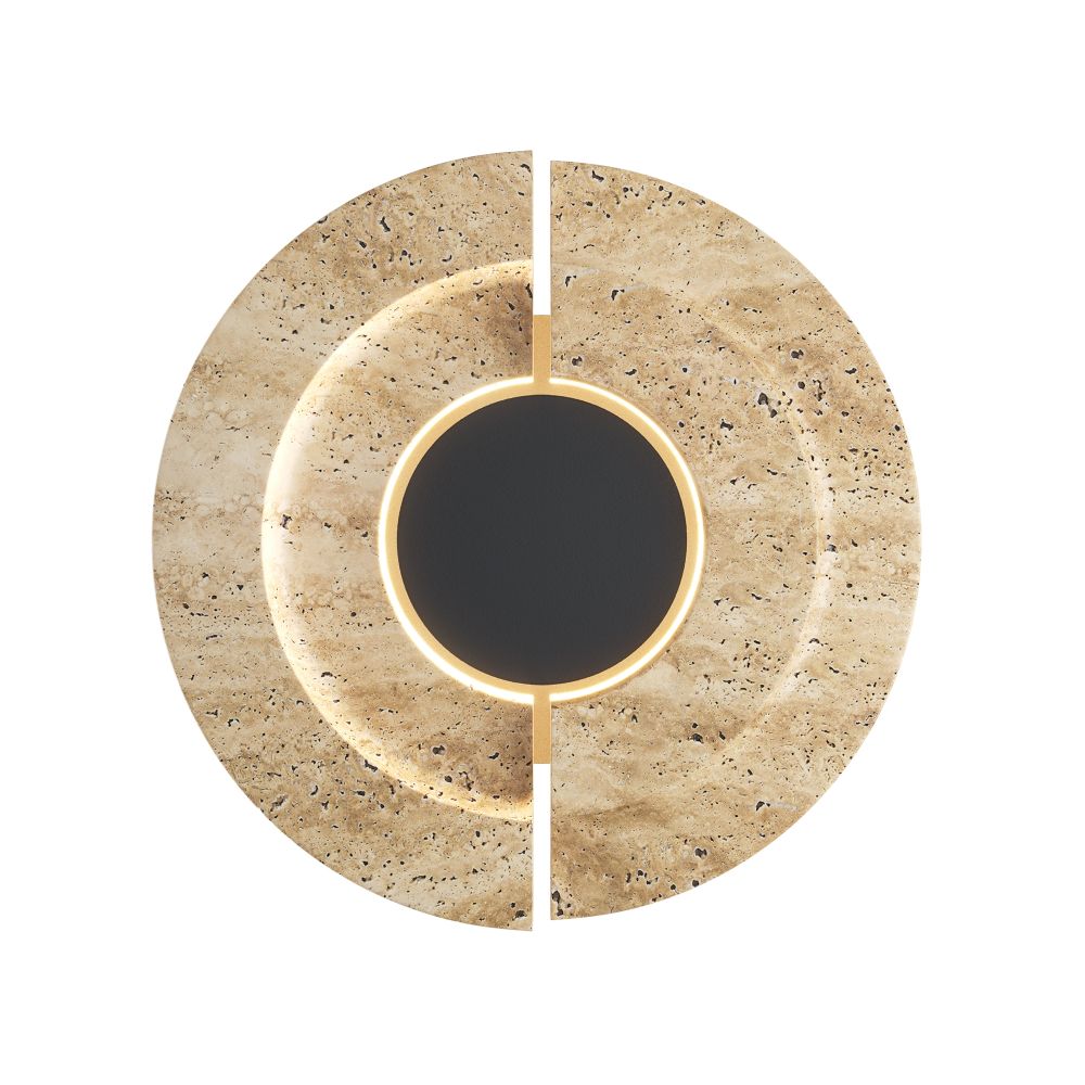 Арматура: металл черный матовый антибликовый. Основной материал: натуральный травертин с уникальным рельефным срезом. LED-источник 3000K, подсвечивающий внутренние грани камня и создающий мягкий ореол на стене. Настенный светильник-артобъект, вдохновленный эстетикой пустыни. Сочетание грубой фактуры камня и строгого металла. Монументальный дизайн с эффектом глубины и таинственности. Для создания акцентного освещения в современных интерьерах.