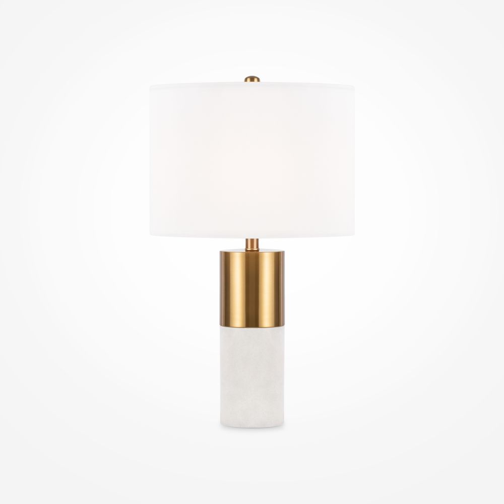 Металлическая арматура, цвет – латунь. Абажур – белый хлопок. Изюминка дизайна – элементы из натурального камня (алебастра). Трендовый микс фактур. Лаконичные формы в американском стиле. Источник света - лампа с цоколем Е14.
