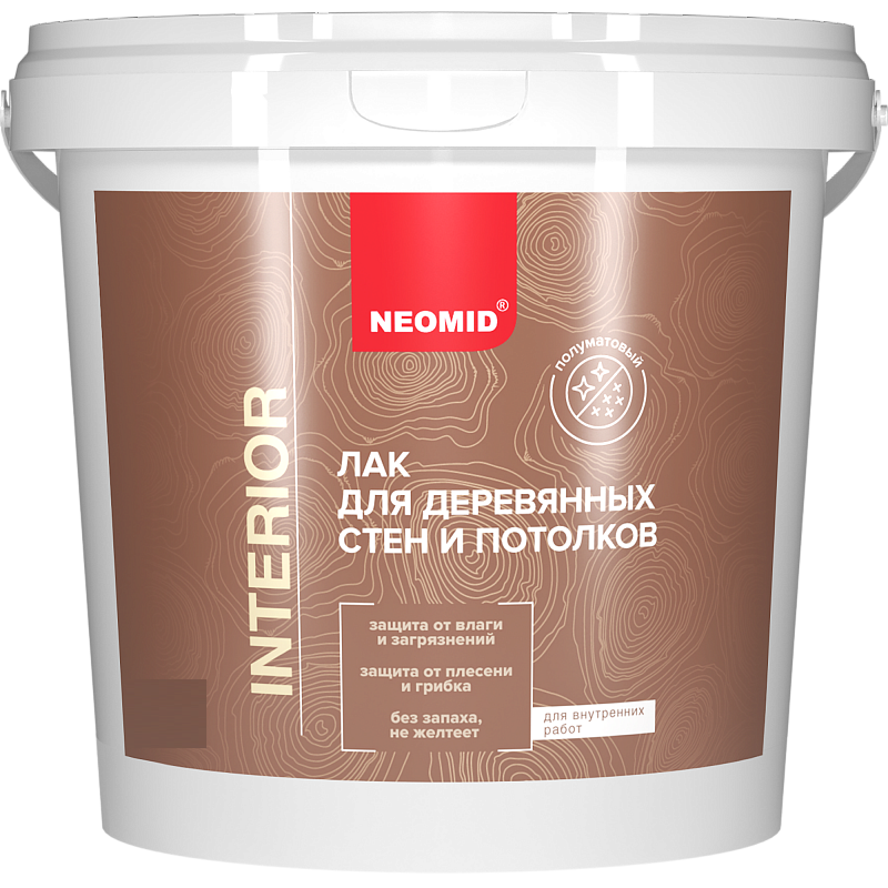 Описание Лак для Дерева Neomid Interior 1л без Запаха для Внутренних Работ / Неомид Интериор.Лак «Неомид Interior» предназначен для эффективной защиты и финишной декоративной отделки поверхности древесины внутри помещений и под навесом. Быстросохнущий, водорастворимый. Практически не имеет запаха. Сохраняет и подчёркивает естественную структуру древесины. Образует защитное полуматовое прозрачное покрытие с высокой эластичностью. Благодаря входящим в состав лака биозащитным добавкам предотвращает образование плесени. Не использовать для лакирования деревянного и паркетного пола.