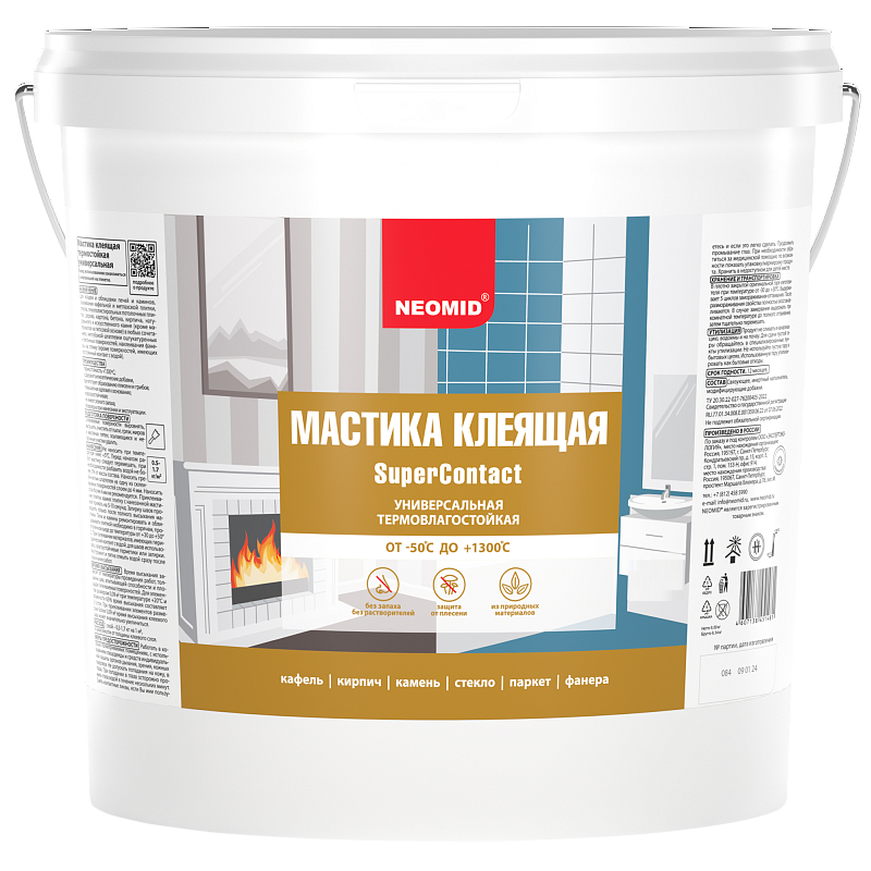 Описание Мастика Клеящая Neomid Supercontact 4кг Универсальная, Термовлагостойкая от -50°С до +1300°С / Неомид Суперконтакт.
