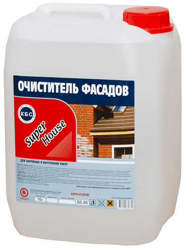 Описание Очиститель Фасада Super Hause БС-85 10л для Внутренних и Наружных Работ.СВОЙСТВА: Экологически чистый продукт, пожаровзрывобезопасный, морозостойкий (после размораживания не теряет своих качеств), не нарушает структуру материала, не изменяет внешнего вида.