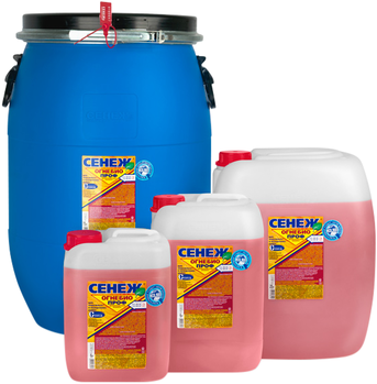 Средство Сенеж Огенибио Проф упаковывают в полиэтиленовые канистры массой нетто 6 кг, 12 кг, 23 кг, полимерные бочки со съемной крышкой массой нетто 75 кг, а также транспортные контейнеры со сливным краном массой нетто 1200 кг.