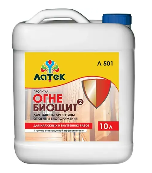 Описание Пропитка Огнебиощит Латек Л 501 5л Белая, II гр. для Защиты Древесины от Огня и Биопоражения.