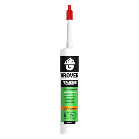 Описание Герметик Силиконовый Универсальный Grover U300 0.3л Прозрачный, для Внутренних и Наружных Работ / Гровер.