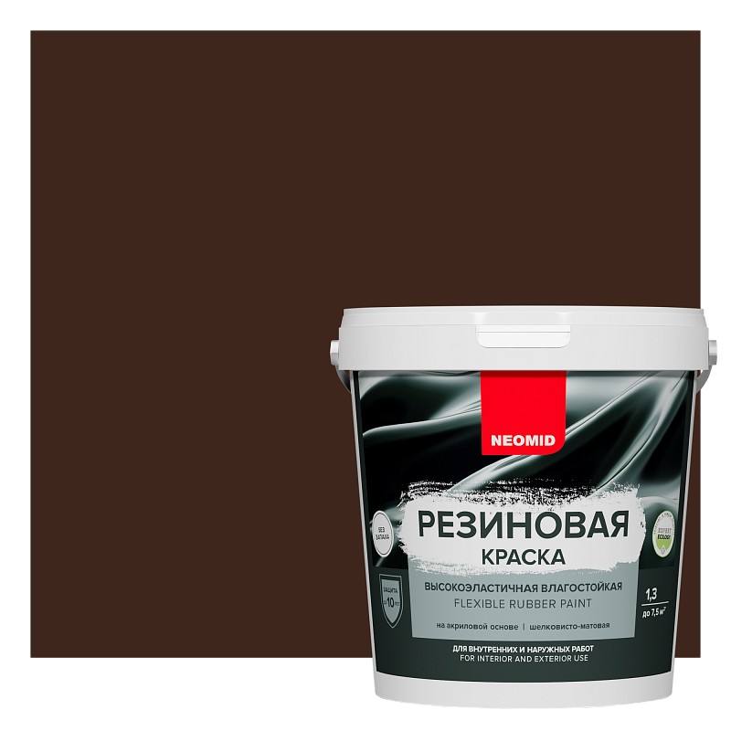 Описание Краска Резиновая Neomid 2.4кг Темный Шоколад для Кровли, Цоколя, Фасада Суперэластичная, Универсальная / Неомид Резиновая.