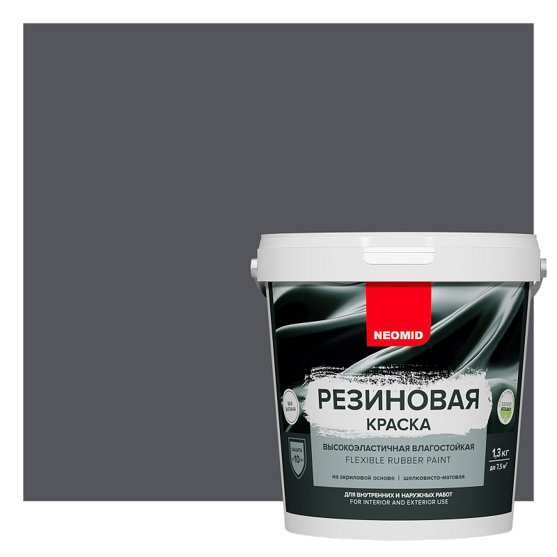 Описание Краска Резиновая Neomid 2.4кг Графит для Кровли, Цоколя, Фасада Суперэластичная, Универсальная / Неомид Резиновая.