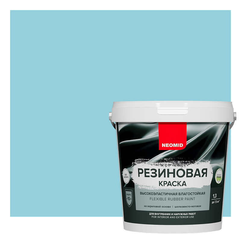 Описание Краска Резиновая Neomid 14кг Голубой для Кровли, Цоколя, Фасада Суперэластичная, Универсальная / Неомид Резиновая.
