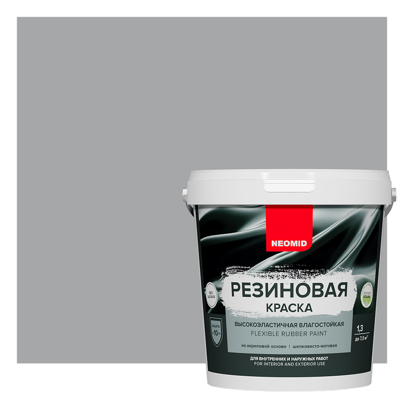 Описание Краска Резиновая Neomid 14кг Серый для Кровли, Цоколя, Фасада Суперэластичная, Универсальная / Неомид Резиновая.