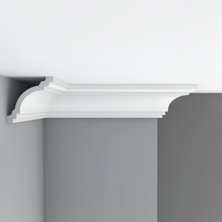 Описание Плинтус Потолочный Гладкий Decomaster 96275 В140хШ142хД2400 мм / Декомастер.