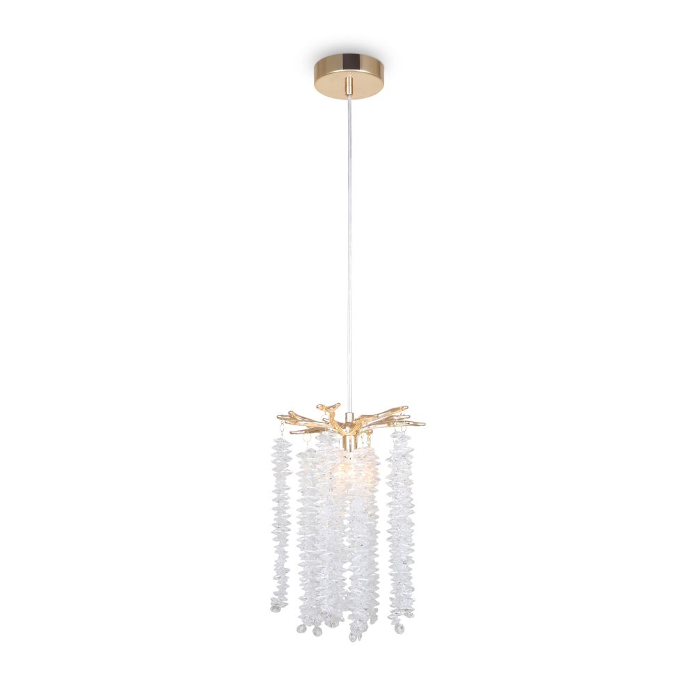 Материалы арматуры —металл, цвет — золото. Хрустальные декоративные элементы напоминают капельки - создают глубокие переливы света. Дизайн в трендовой растительной тематике. Источник света — лампа с цоколем G9 и с поворотной функцией.