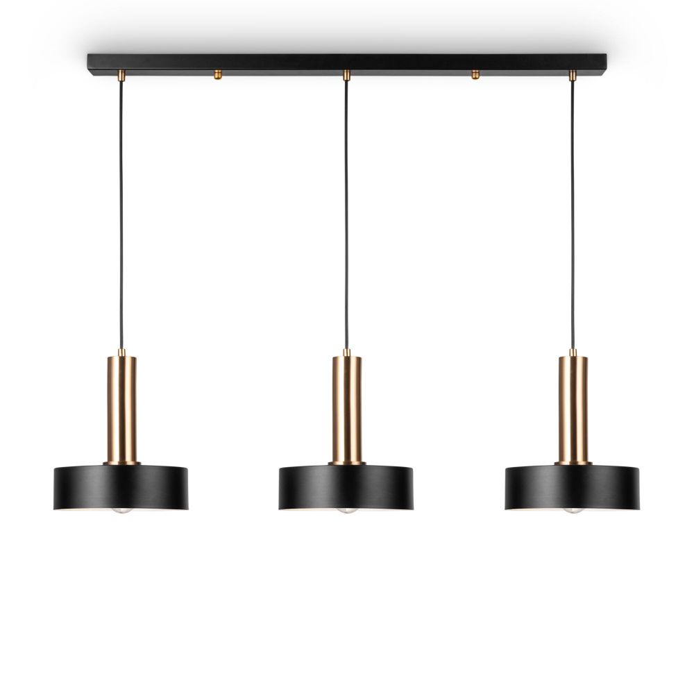 Арматура и плафоны из металла. Цвет арматуры – черный и латунь. Плафоны окрашены в черный оттенок. Актуальный лофтовый дизайн. Источник света – лампа с цоколем E27.