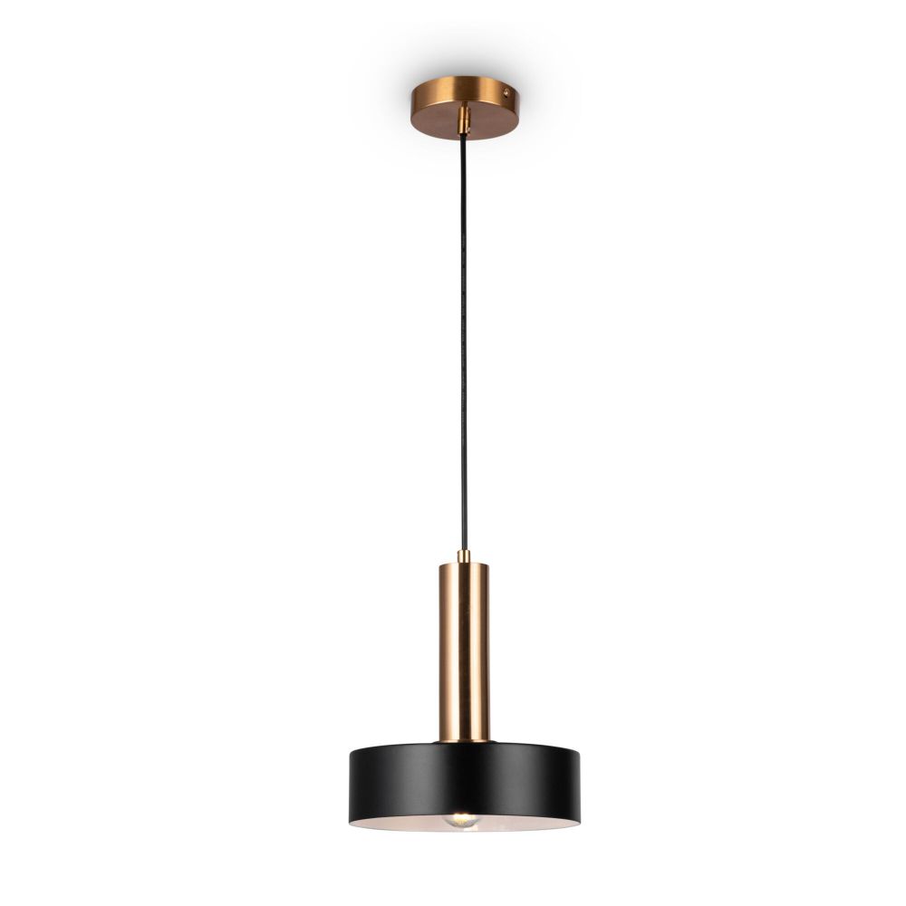Арматура и плафоны из металла. Цвет арматуры – черный и латунь. Плафоны окрашены в черный оттенок. Актуальный лофтовый дизайн. Источник света – лампа с цоколем E27.
