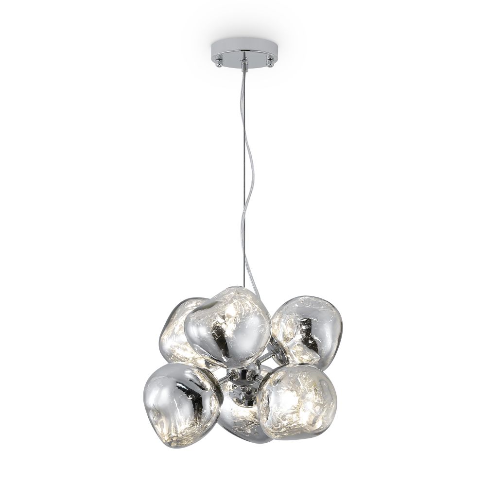 Арматура — металл, цвет — хром. Шарообразные плафоны с зеркальным эффектом и переливами. Материал - стекло с серебристым напылением. Источник света — лампа с цоколем — E27.